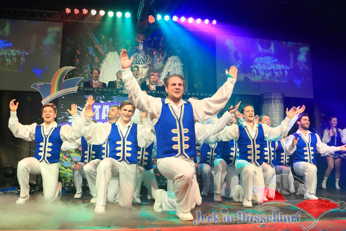 Natürlich präsentiert auch die Auftrittsgruppe der KG Regenbogen ihre eigene Gesangs- und Tanzshow, an deren Anschluss Ehrenpräsident Lothar Hörning vom ganzen Stahlwerk ein Geburtstagsständchen gebracht bekommt. Im letzten Jahr hatte er die Sitzung moderiert, da Präsident Andreas Mauska wegen Krankheit nicht auftreten konnte.