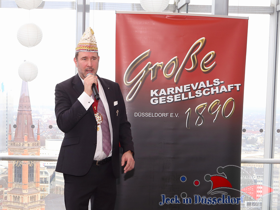 Die 20. Etage der Stadtsparkasse Düsseldorf im Hochhaus an der Berliner Allee 33 dient als exklusiver Veranstaltungsort für besondere Anlässe, Empfänge und Sitzungen. Am Freitagmittag gab es einen solchen Anlass: Die GROßE Karnevalsgesellschaft 1890 Düsseldorf e.V. und die Stadtsparkasse hatten zum Empfang eingeladen.